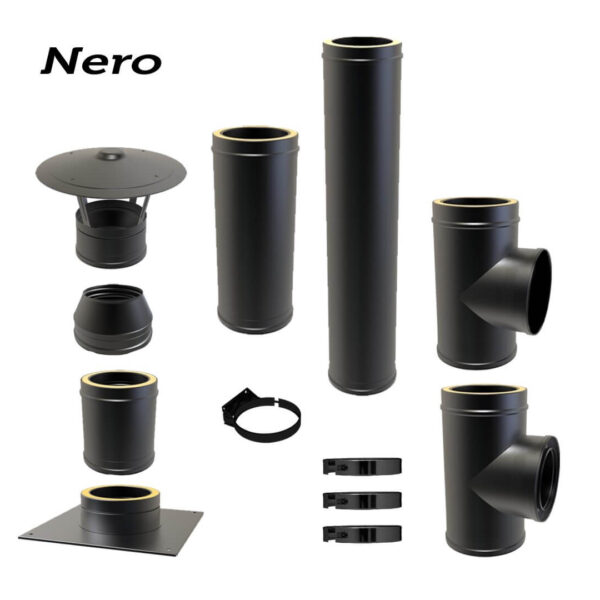 Acest tip de cos de fum poate fi folosit atât pentru rezidențial cât și pentru aplicații industriale care folosesc gaz, combustibil solid și lichid. Sistemul KaminHorn Nero are o rezistență de până la 600°C, certificată.